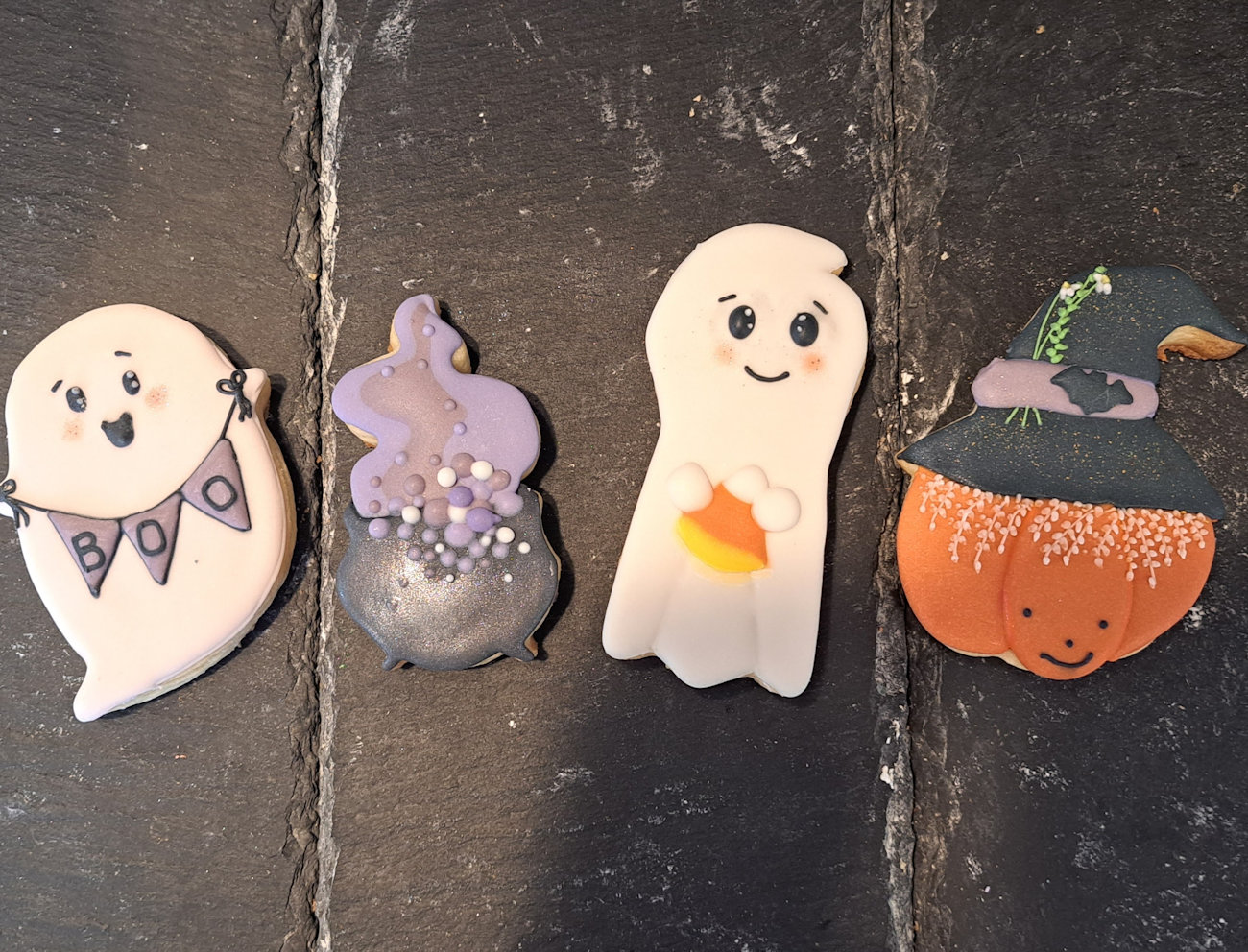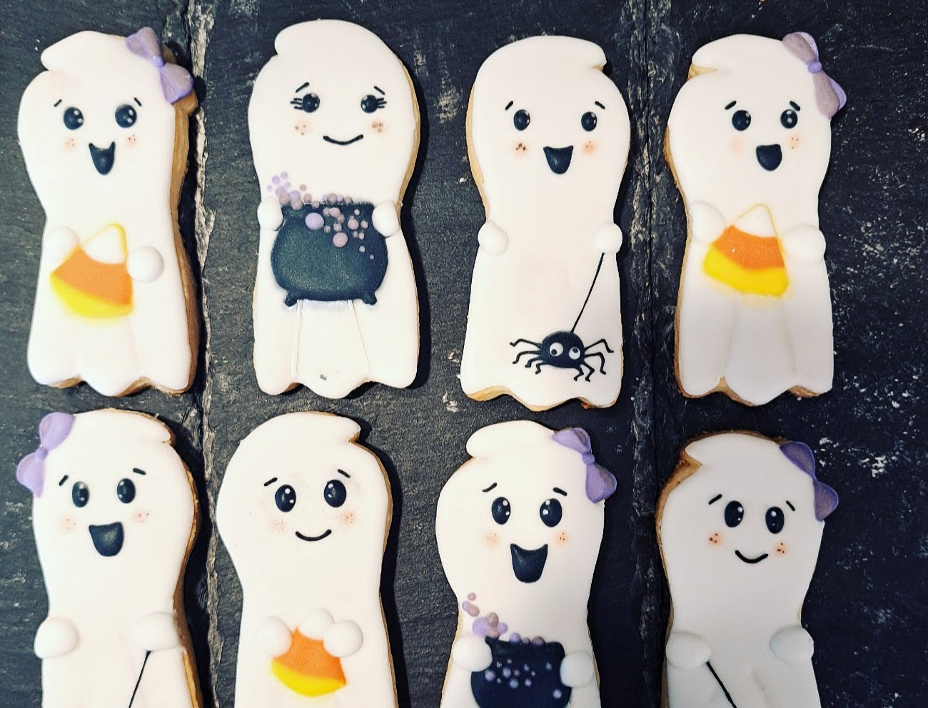 Creepy Cookies: Perfect for Halloween, these treats include adorable ghosts (including cat ghosts), witches’ hats and socks, bubbling cauldrons, creepy trees and houses, bats, and more.