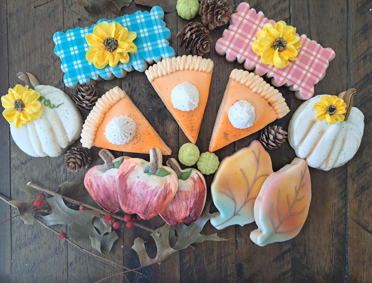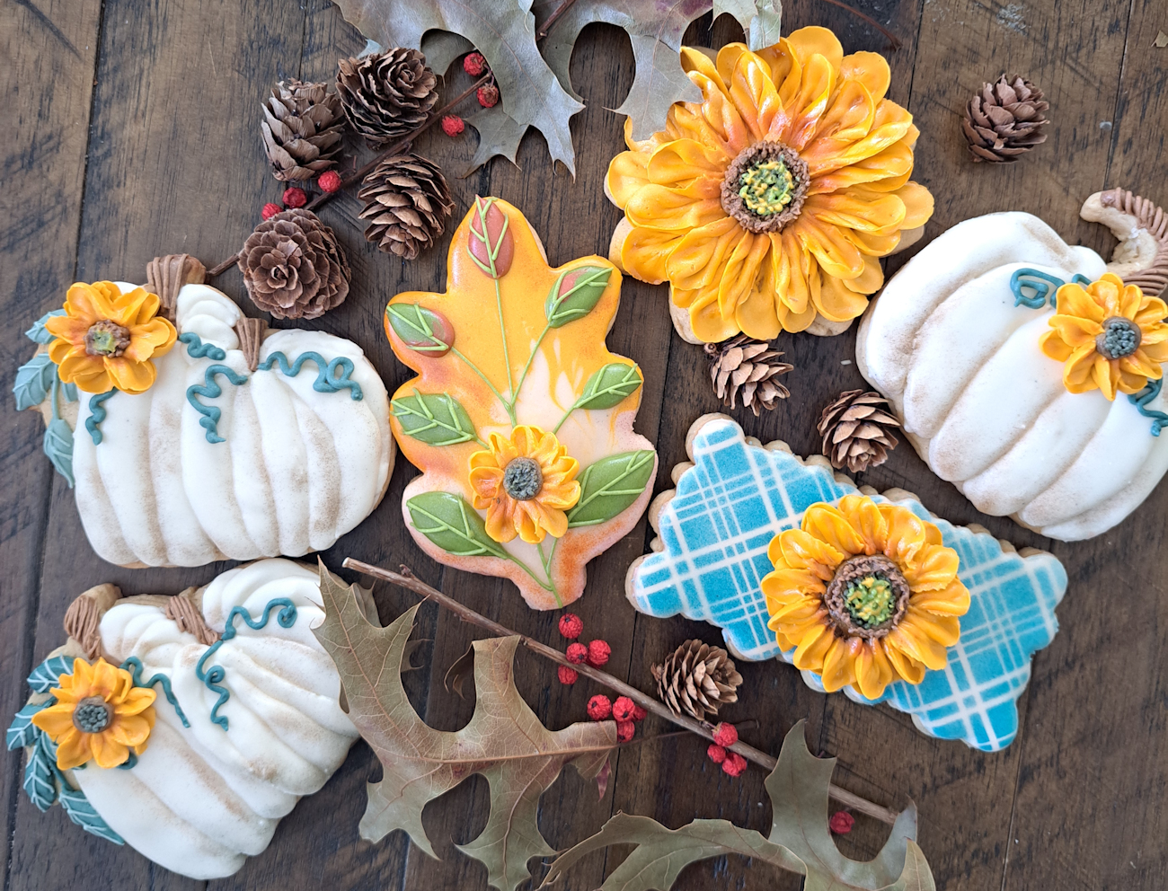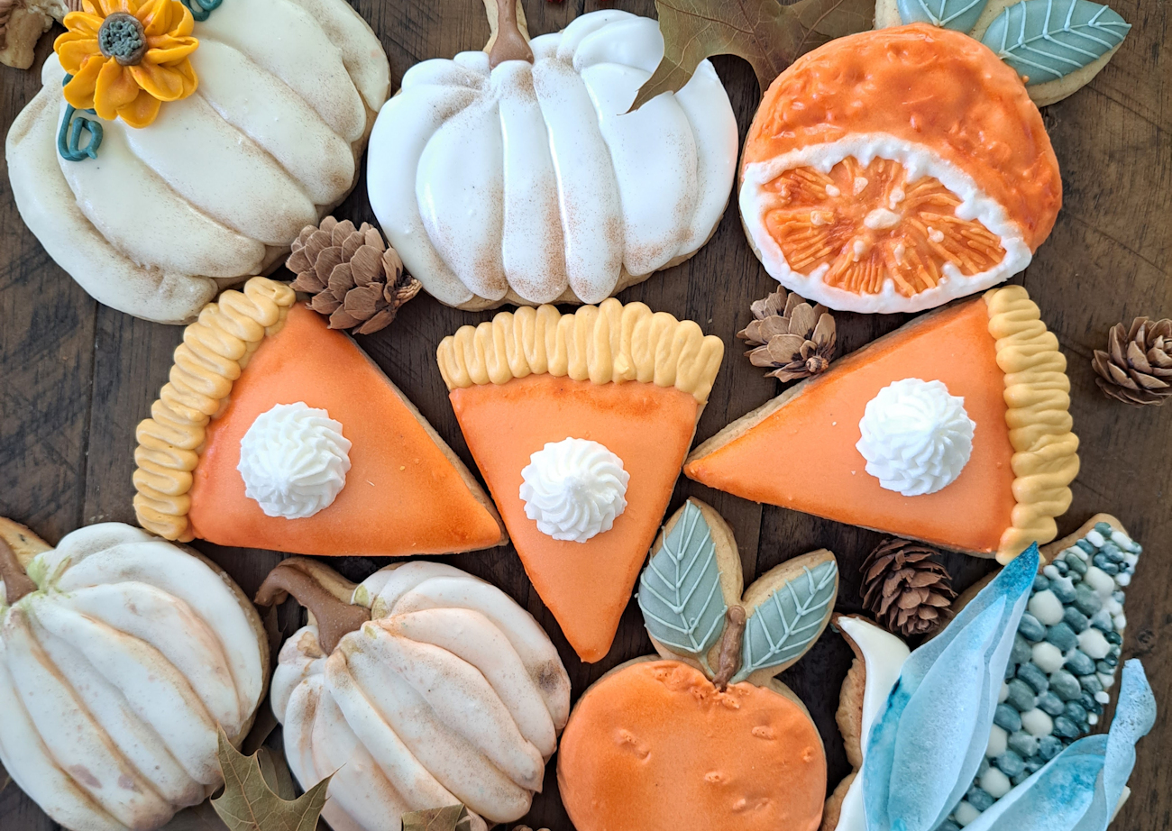For fall, I offer a delightful array of cookies that truly capture the season’s spirit, with fresh designs each year. Here’s what’s featured in this year’s collection: