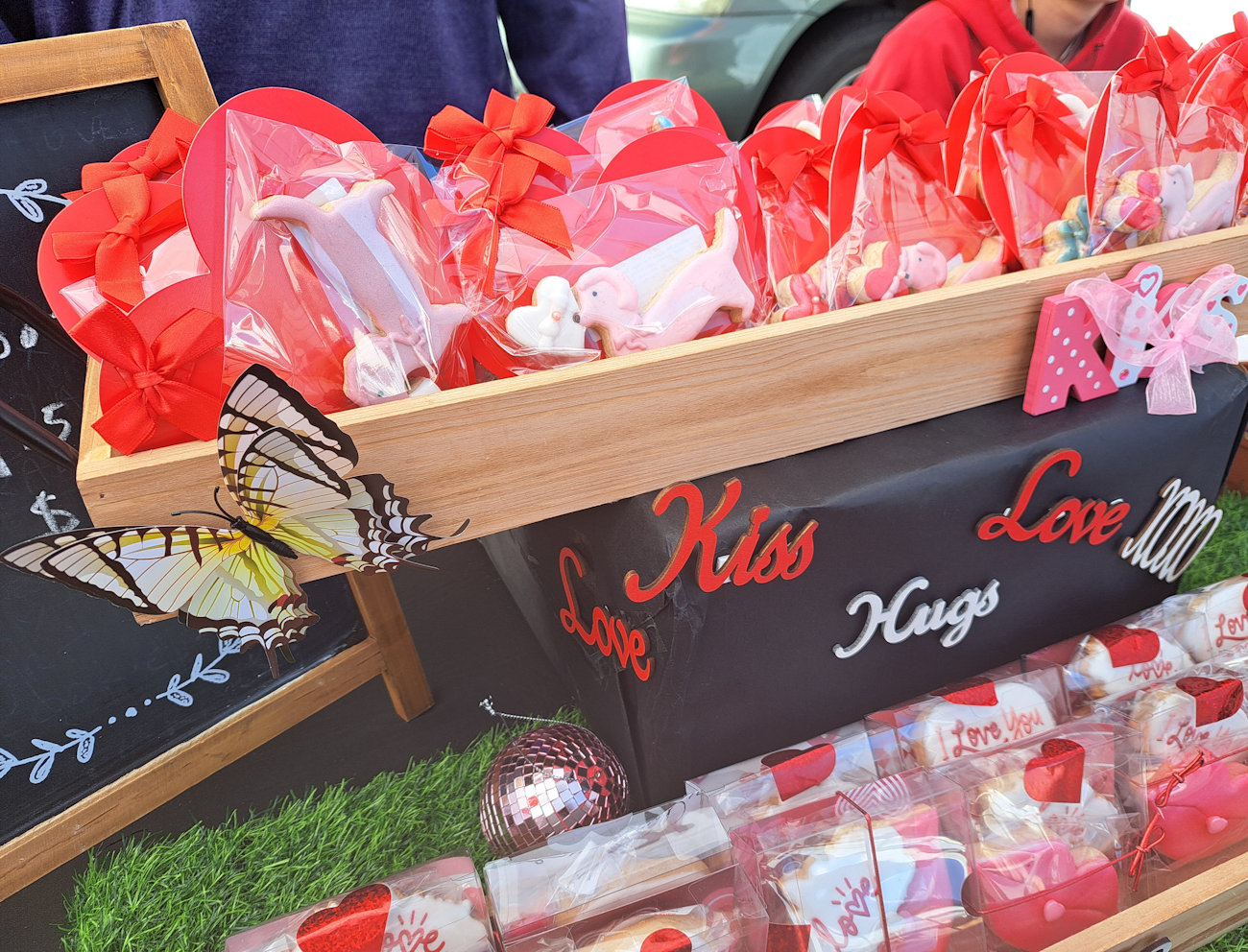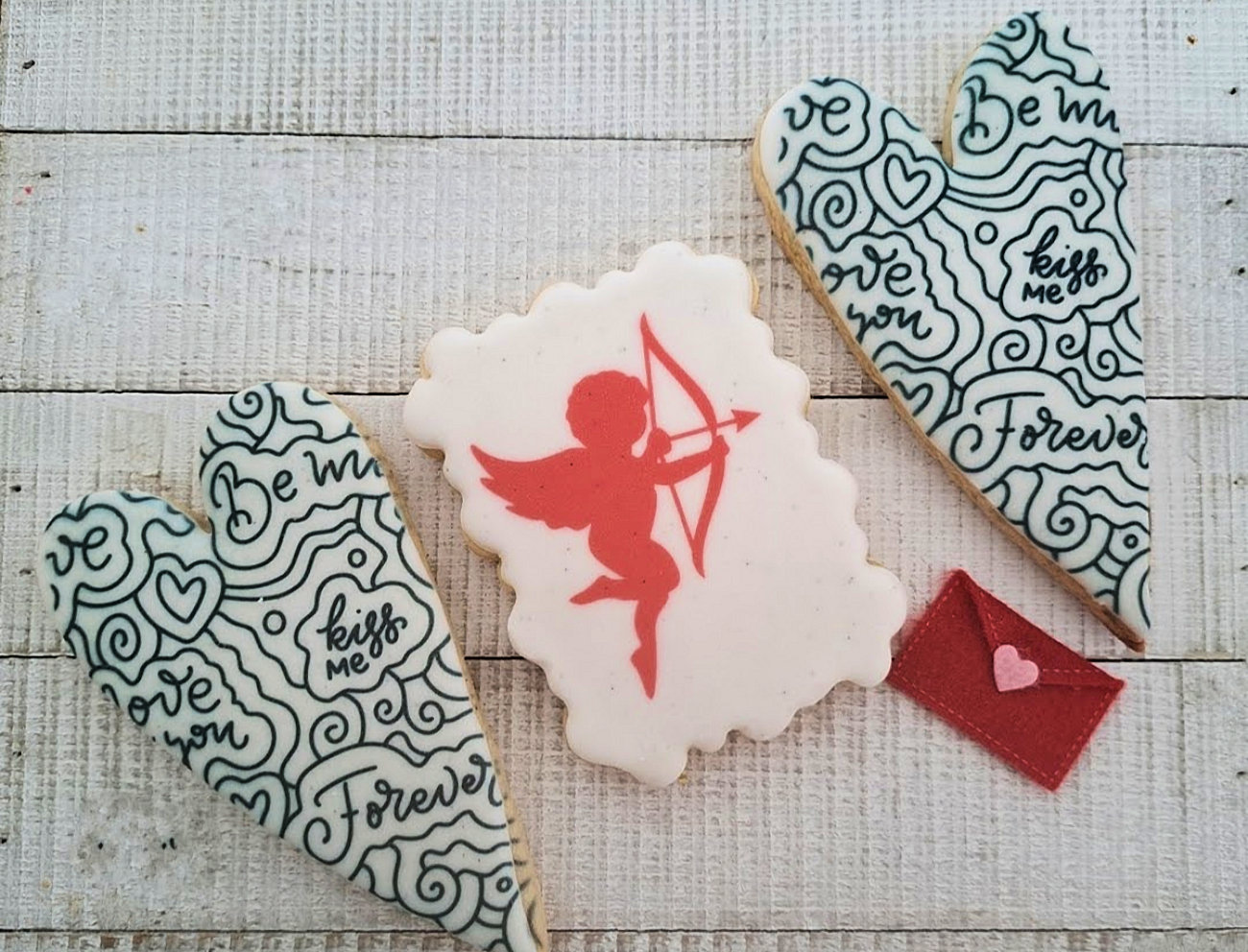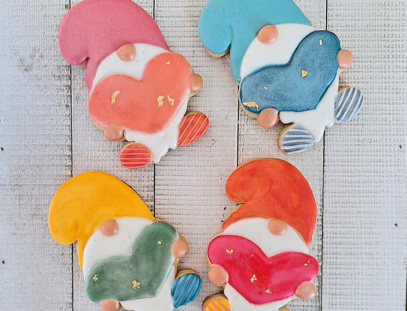 Valentine’s Day—I used to roll my eyes at the mere mention of Valentine’s Day, but these days I say, why not celebrate any time we can! There are many options to choose from in this special section: Love Bound Barkers—a set of hearts attached to doggies, Love Bites—heart shaped cookies of all sizes, Lovey Dovey—a variety of Valentine’s Day themed cookies like the two birds on either side of a heart, love bandit, any animal with heart, gnomes with hearts, homes with heart design, lips, an elegant bunch of roses or any other flower for that matter, something sweet and heartwarming, or whimsical—you’ll find it all. I can add a romantic saying or hearts to any shape or theme that you choose.