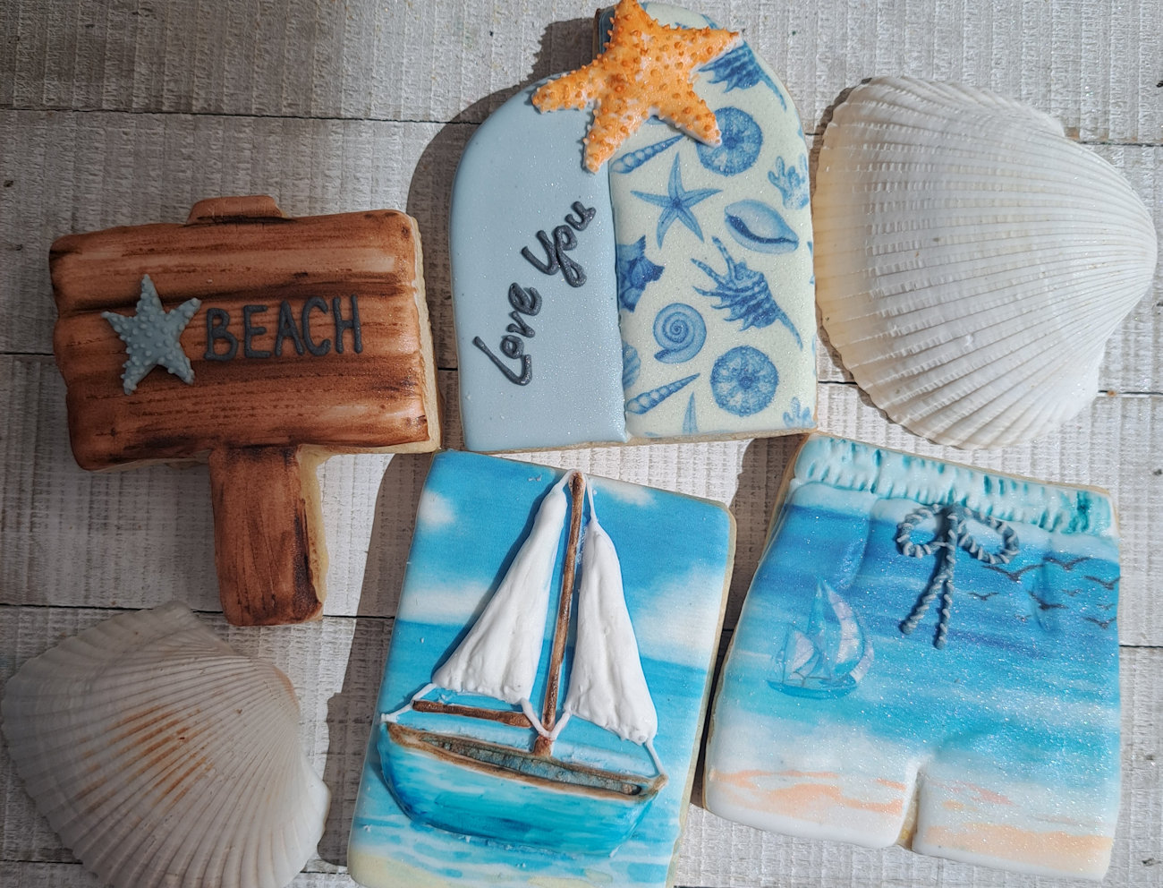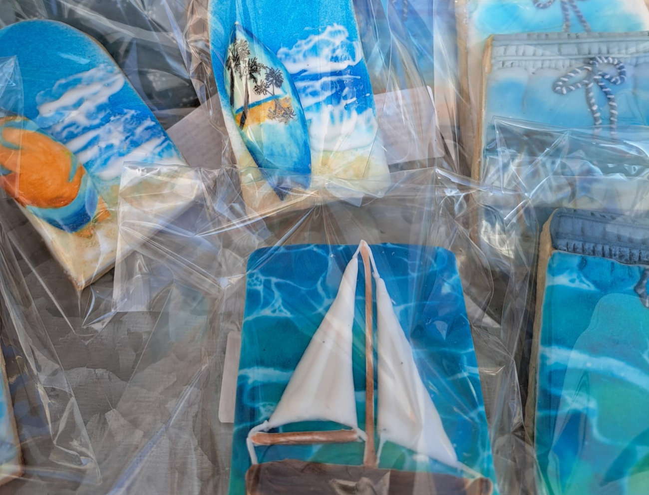 Explore the Summer Paradise cookie collection, where each bite whisks you away to your favorite coastal escape or dream destination. From delicately detailed seashells that seem to have just washed up to the shore to vibrant fish and scenic snapshots of beach waves, boats, and sun-kissed beachgoers, these cookies are more than just treats—they’re a taste of summer, artfully captured in sugar. Perfect for bringing a bit of the beach to any occasion!